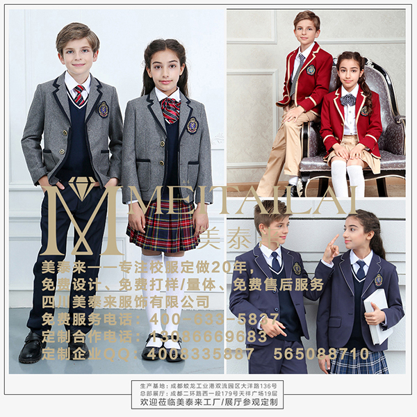 2、在学生校服的款式上,可运用传统中华民族的特色去设计不同的风格和款式等,可配搭西装、中山装、连衣裙、风衣、羊毛、针织运动外衫、马甲等等。
