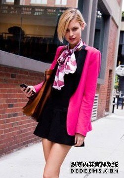 玫红色似乎是搭配中较为棘手的颜色。黑色与玫红色的拼接